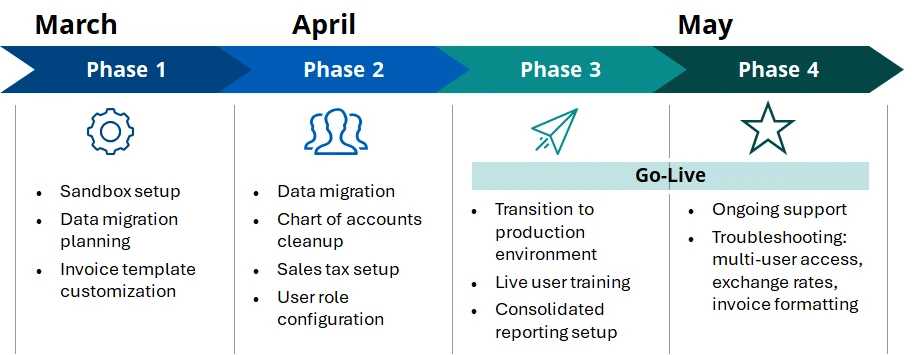 - Migrating invoices, journal entries, and historical transaction details.