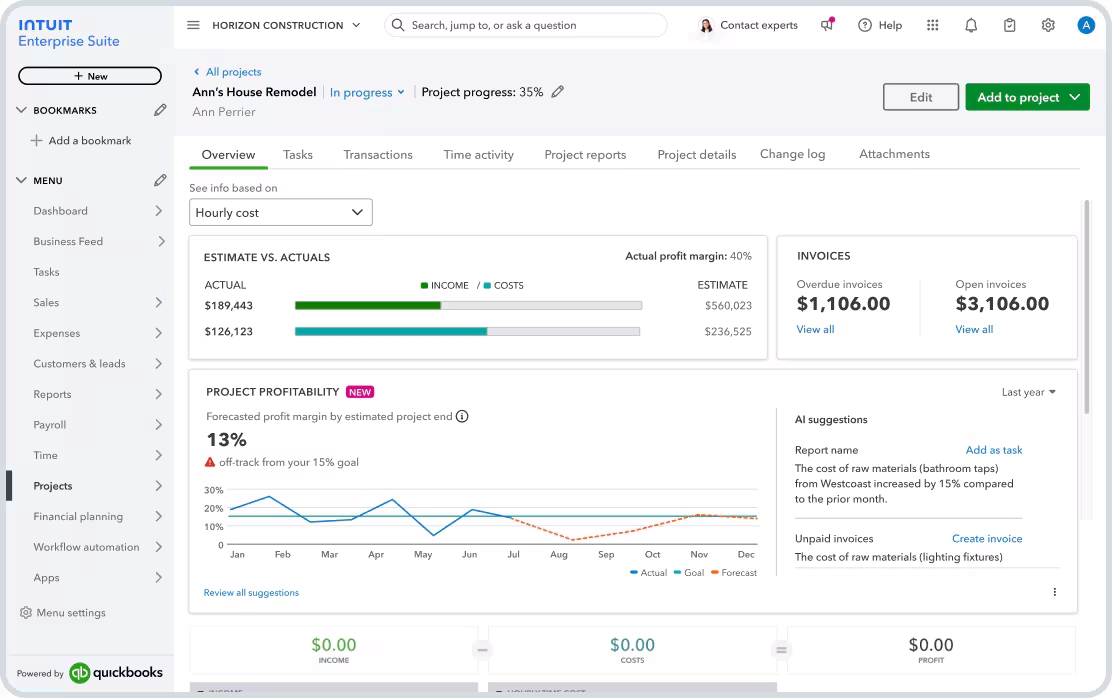Yes — Intuit Enterprise Suite supports project profitability tracking and automated revenue recognition.